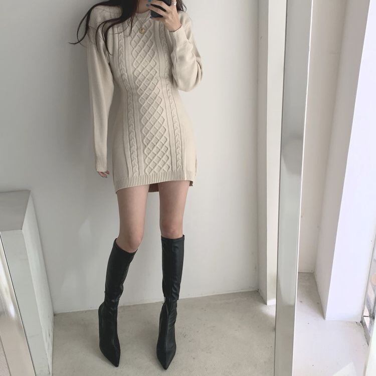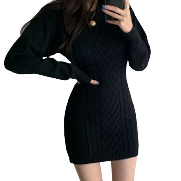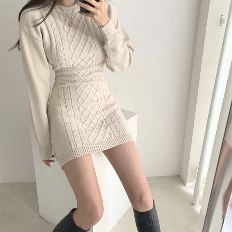 クリアランスセール!ラスト1点!即納商品!バックオープンニットミニワンピ 韓国ファッション