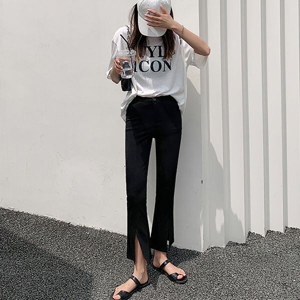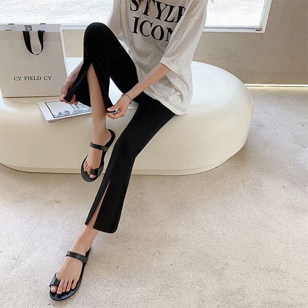 即納商品!セール中!残りわずか!スリット センタープレス フレアパンツ 韓国ファッション