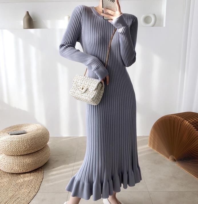 ニットロングワンピース 韓国ファッション