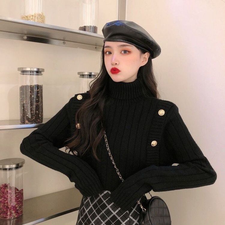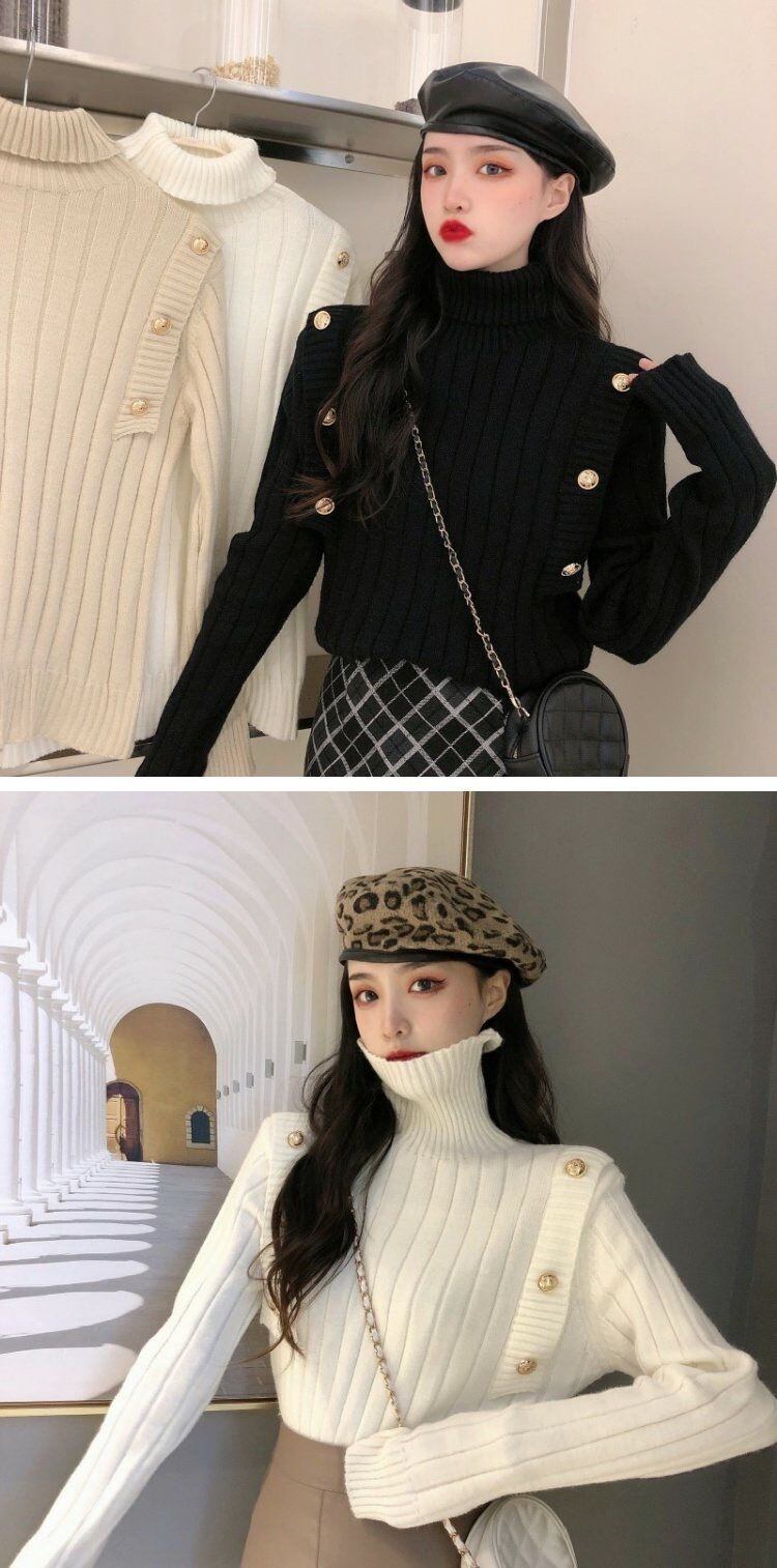 ゴールドボタンが可愛い♡タートルネックニット♡韓国ファッション