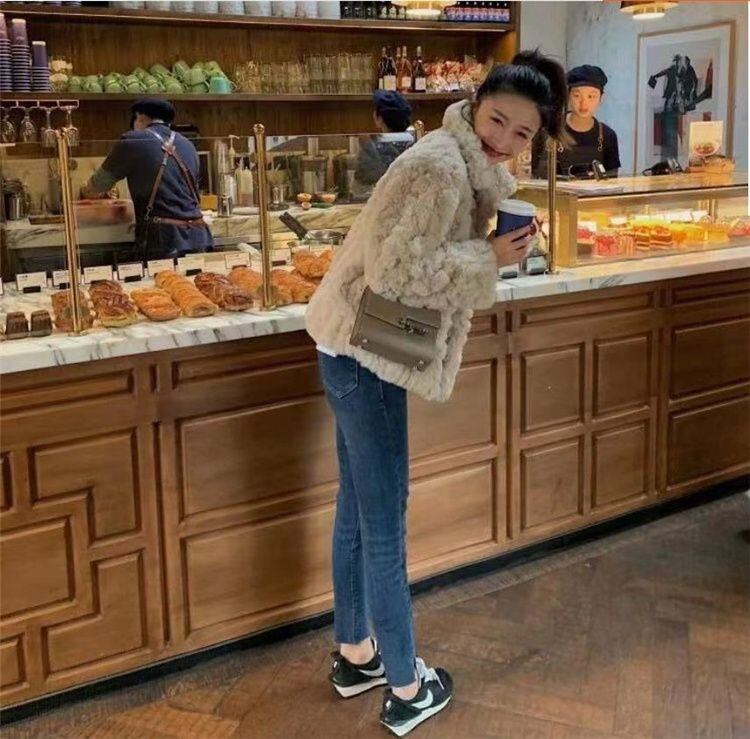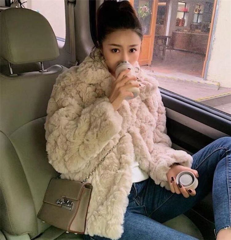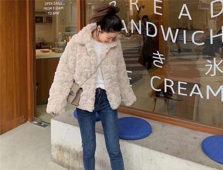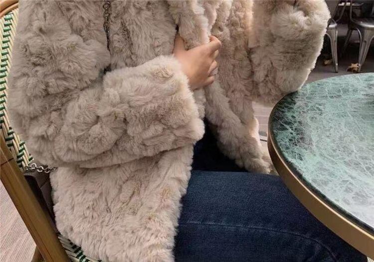 韓国ファッション 2021 フェイクファー コート 秋冬 ラビットファー もこもこ 短いスタイル sweet系