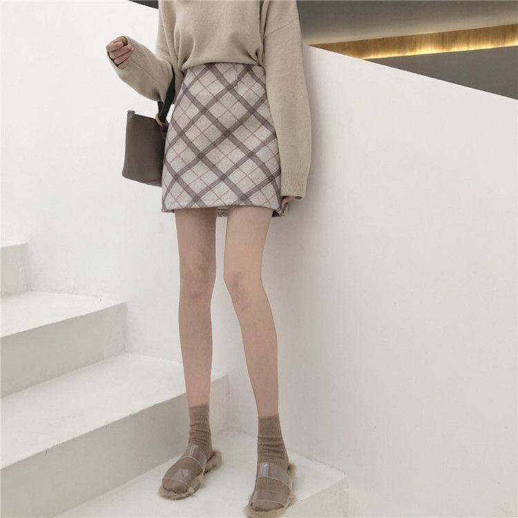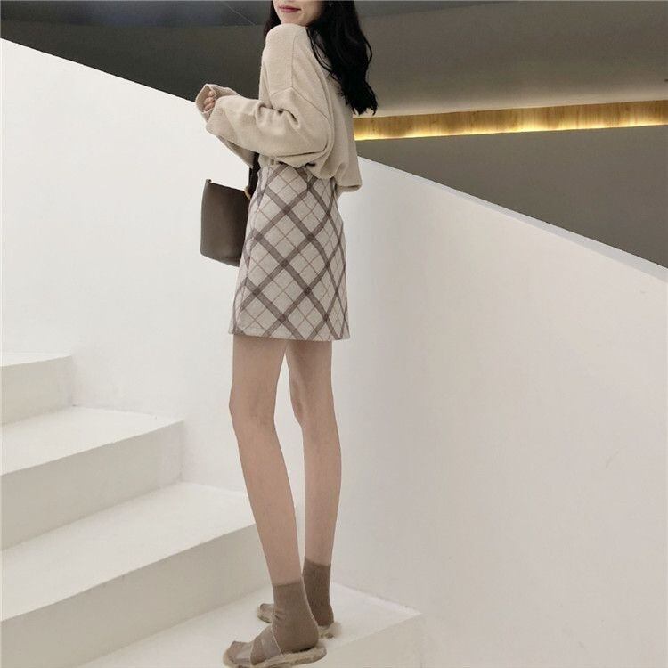 韓国ファッション チェック柄 エレガント スカート タイトスカート ミニスカート