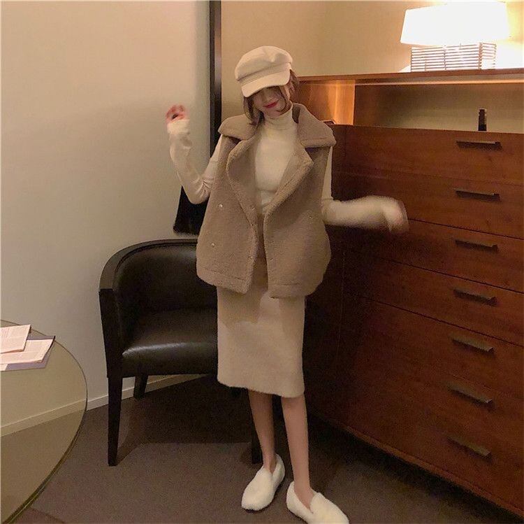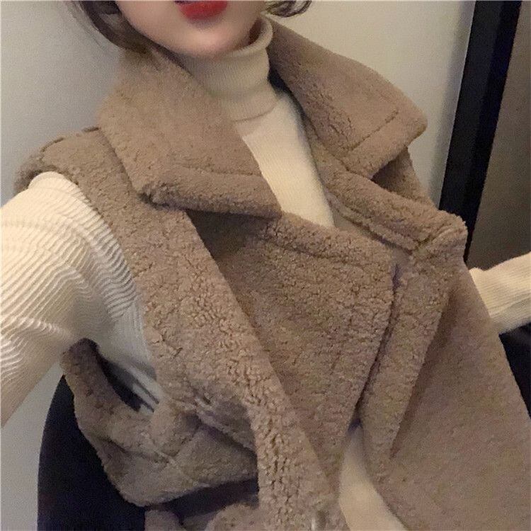 もこもこベスト♡韓国ファッション/ラペル/短いスタイル/子羊の毛/ファー・毛皮/コート