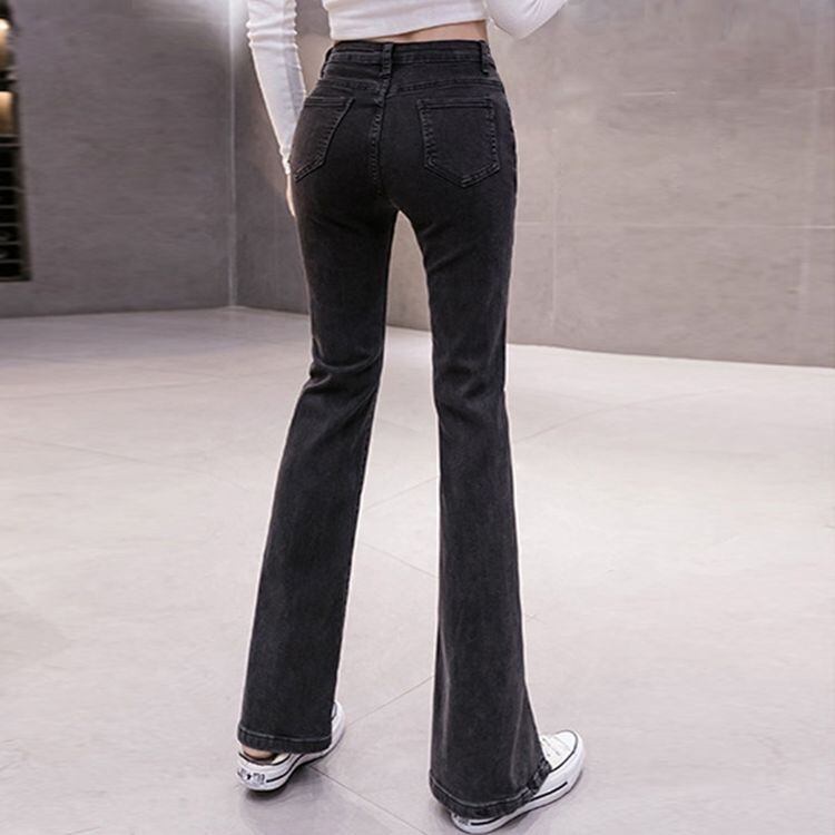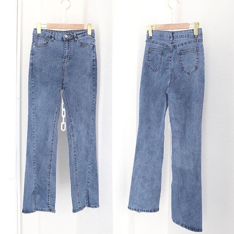 スキニーパンツ 裾スリット ブーツカットパンツ ハイウエスト ストレッチジーンズ 着やせ