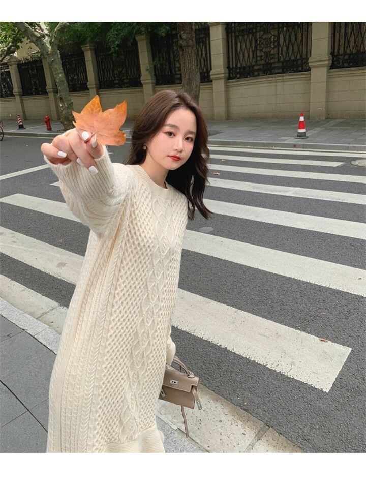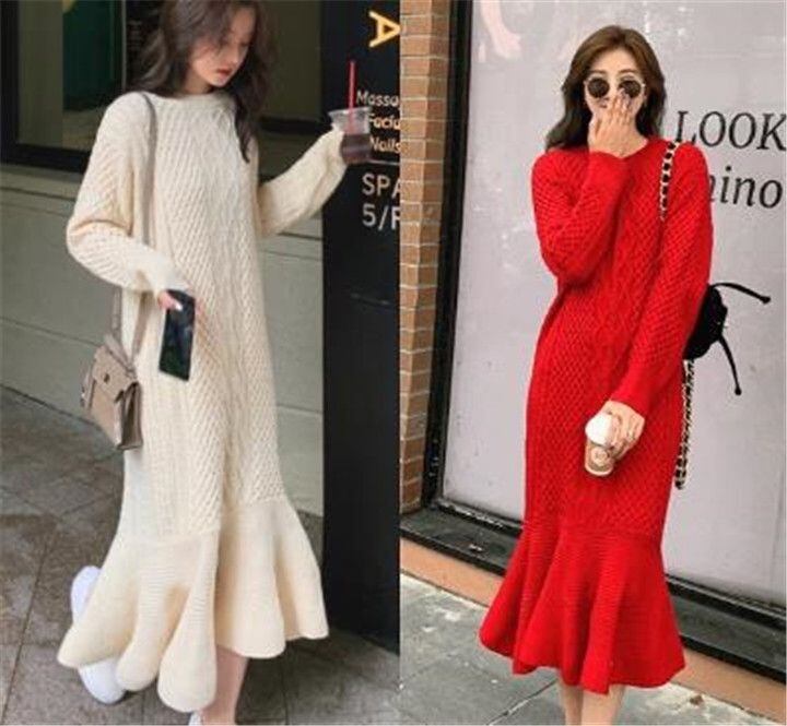 ワンピース ニット フリル 切り替え 体型カバー 着痩せ sweet系 エレガント 百掛け 厚手 中・長セクション