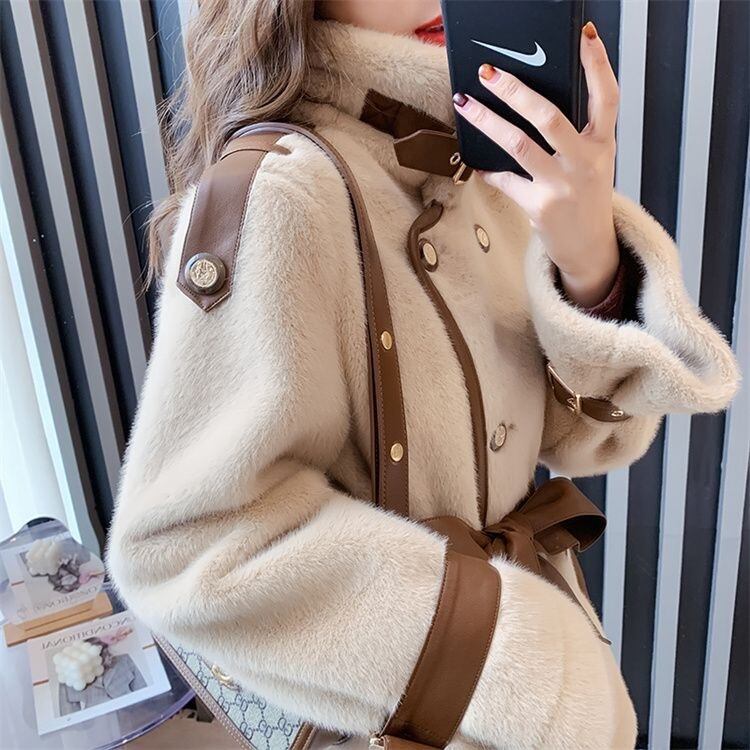 早い者勝ち コート 暖かい 厚手 気質 快適である 子羊の毛 イミテーションミンク