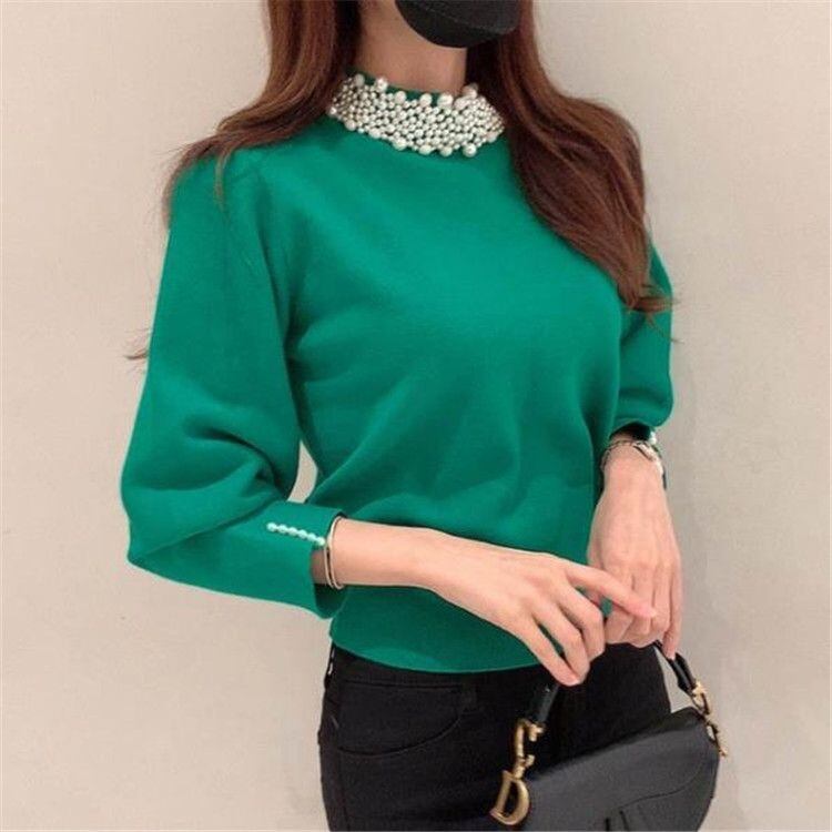 エレガントなパールニットトップスです。
