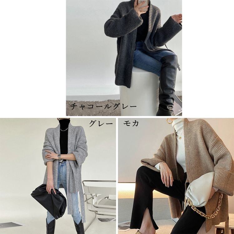 レディース 秋冬 ニットジャケット ウェストマークVネック 無地 厚手 ニットトップス 着やせ ゆったり 体型カバー