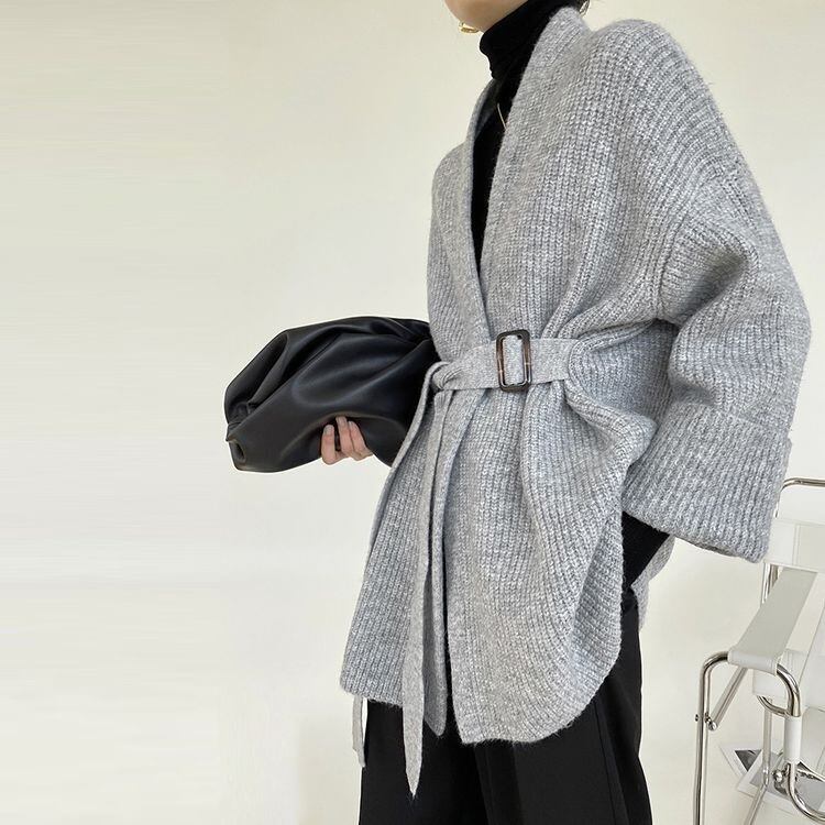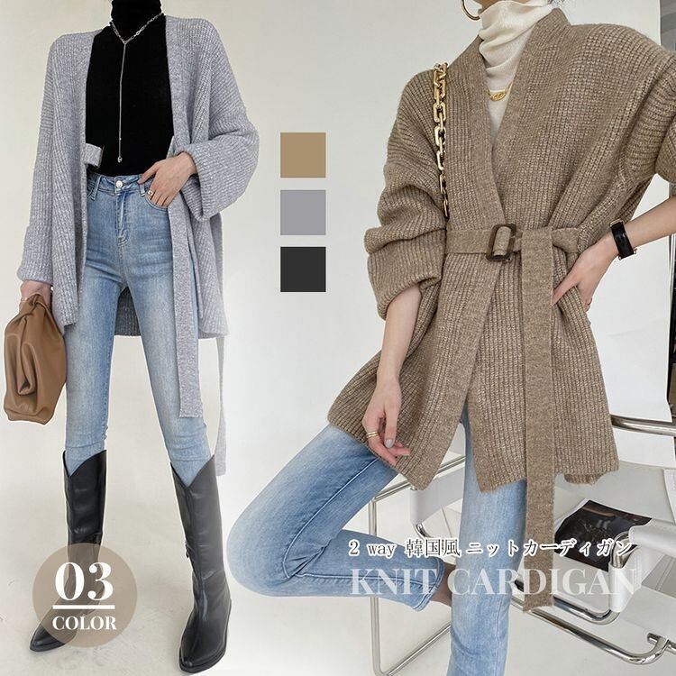 女性らしい綺麗なシルエットを演出してくれるベルト付きニットカーディガン。