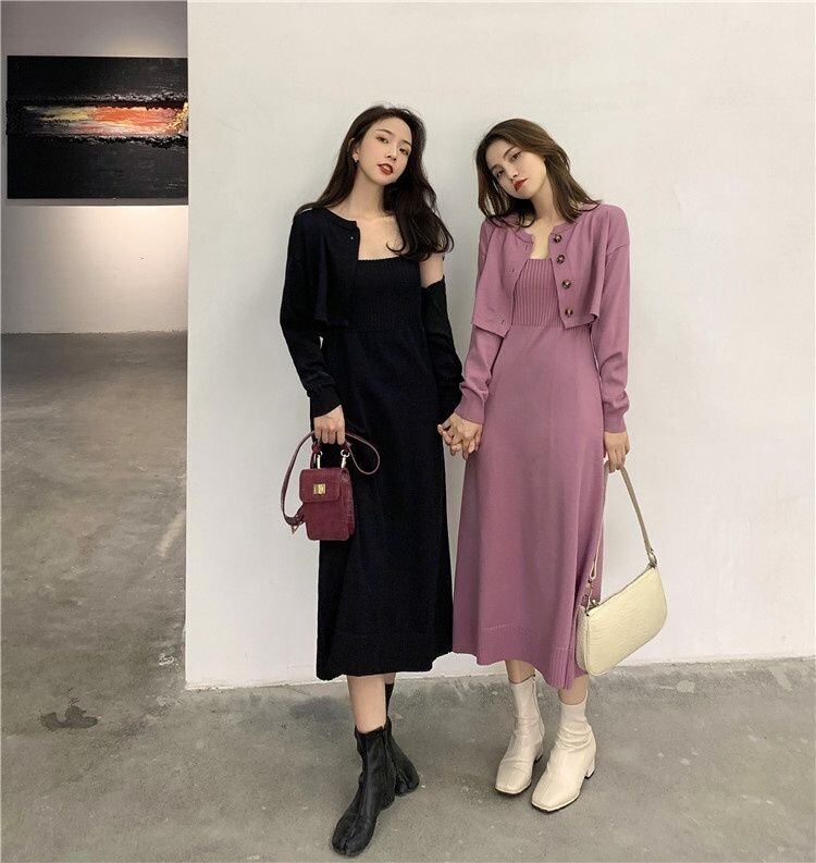 カラー:ブラック(カーディガン),パープル(カーディガン),ブラック(キャミワンピ),パープル(キャミワンピ