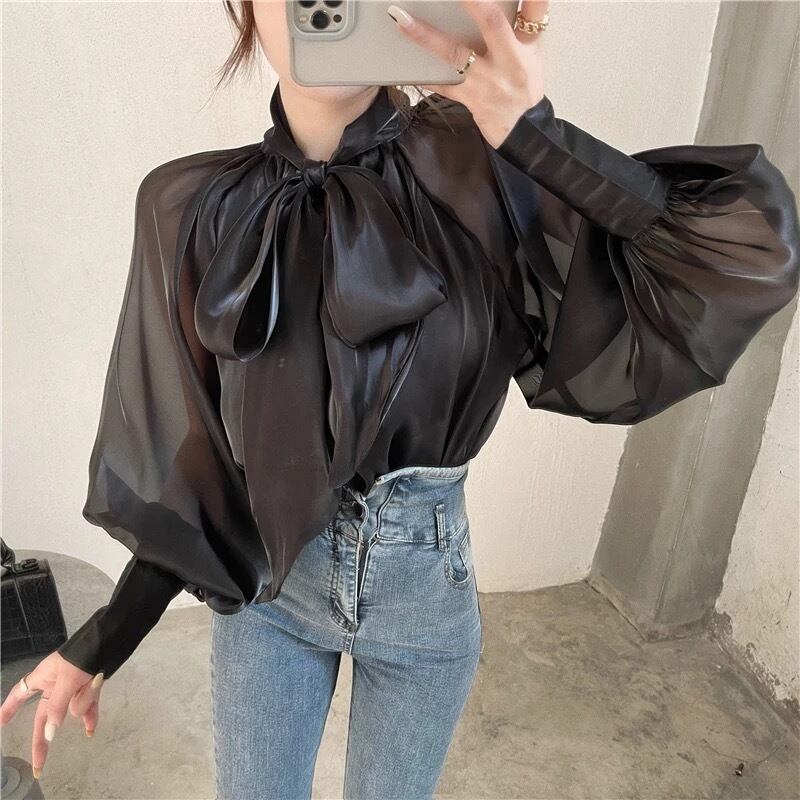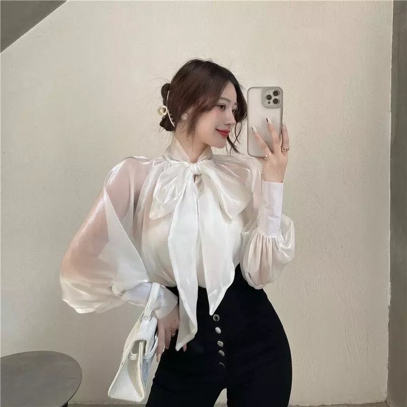 シアーグロッシーリボンブラウス♡