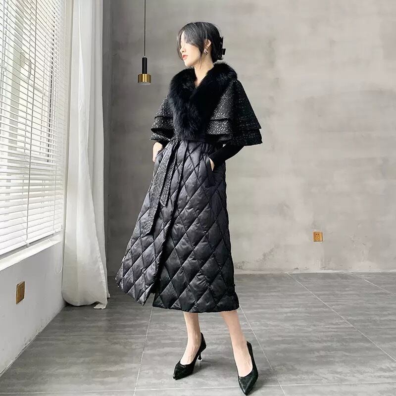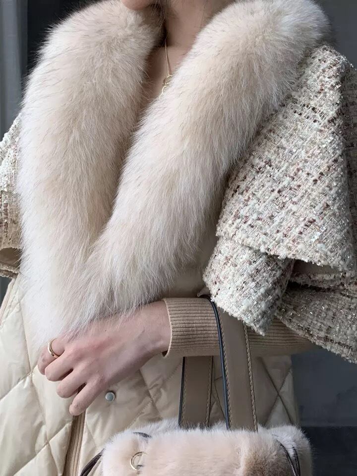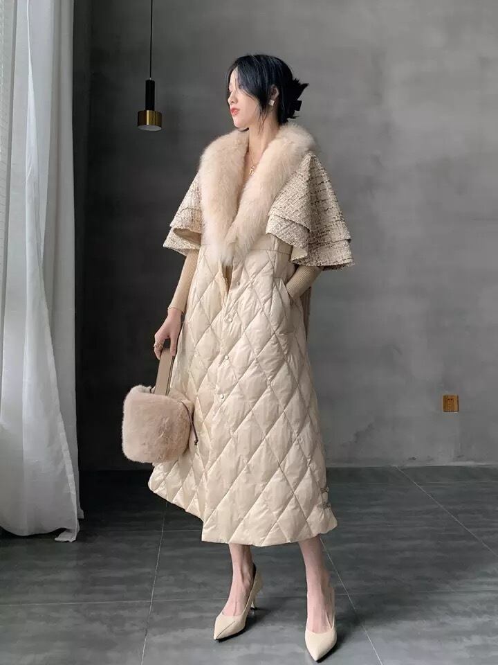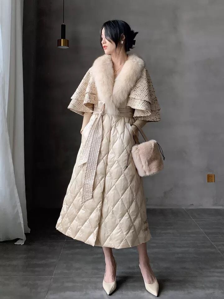 リアルフォックスファーホワイトダックダウン90%キルティングコート♡