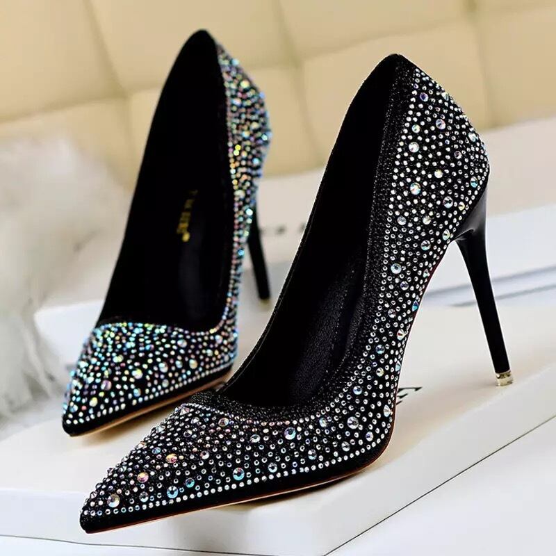 ラインストーンパンプス選べるヒール7cm/10cmご注文後サイズ確認致します
