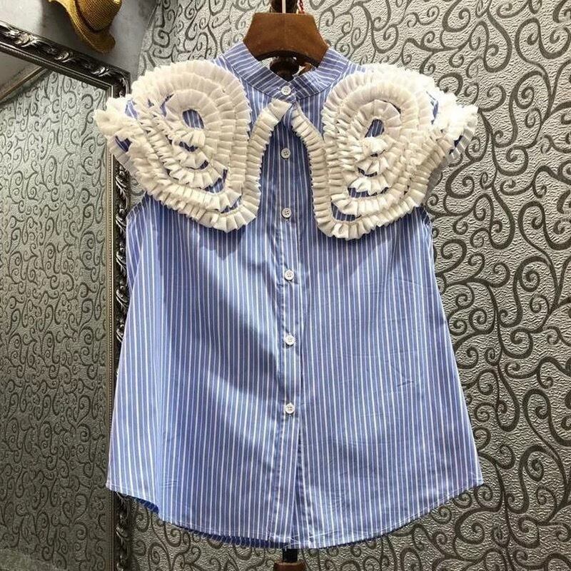 ビッグカラーデザインノースリーブブラウス♡