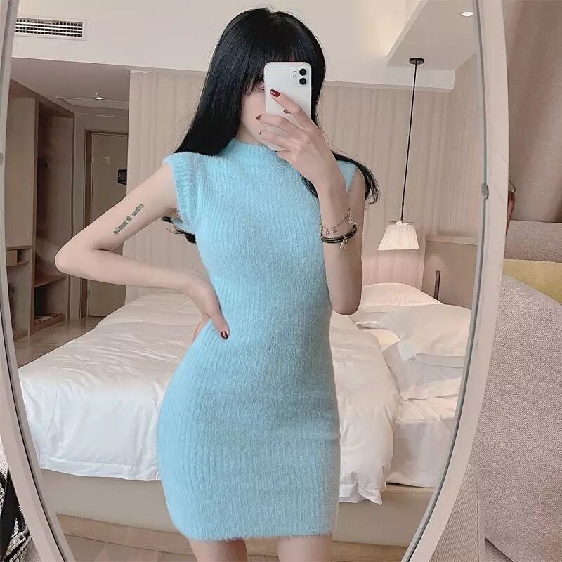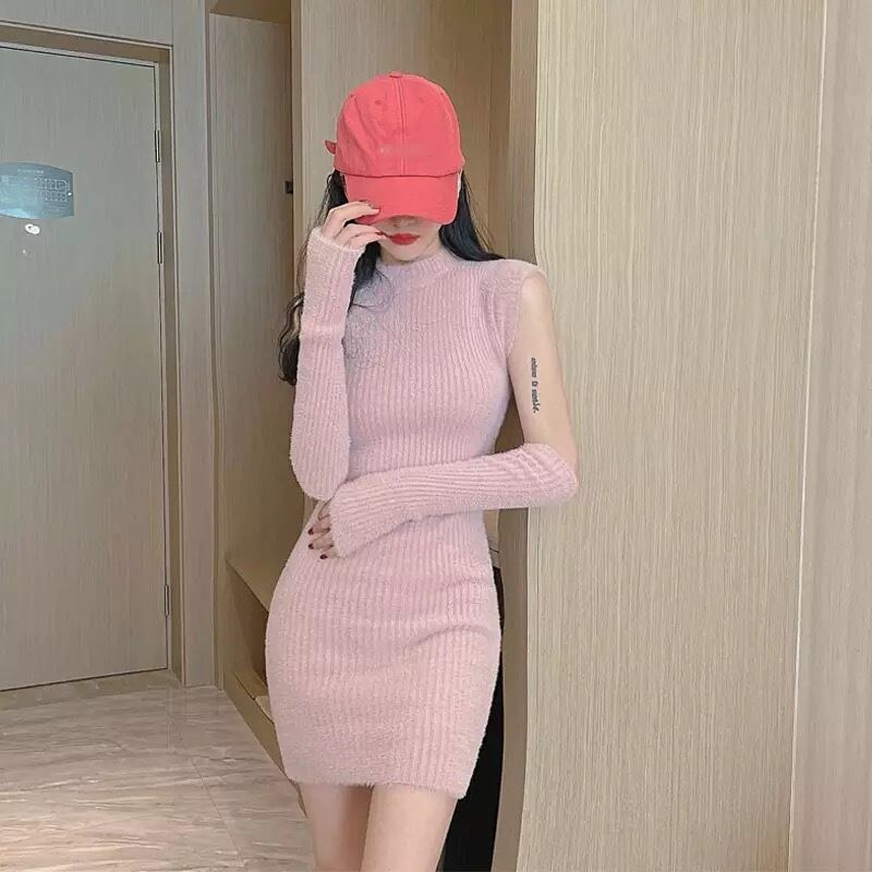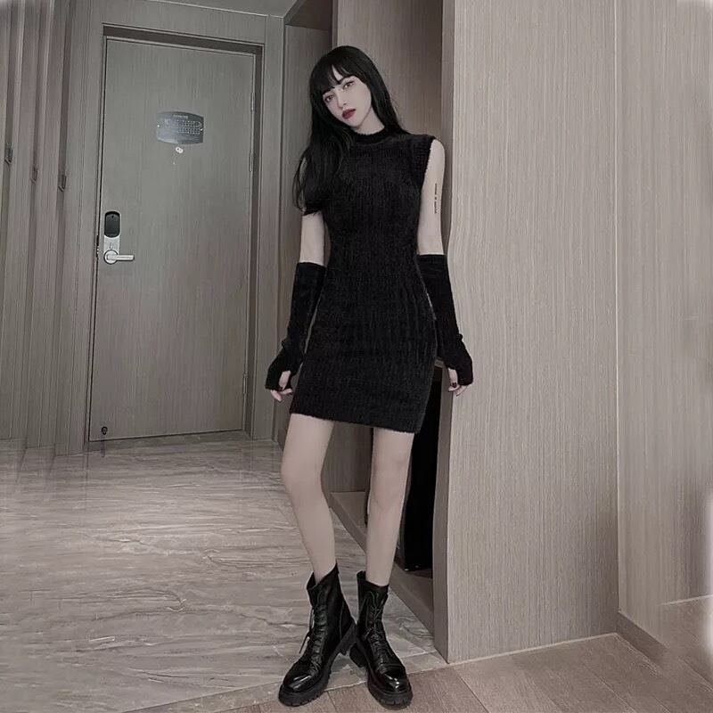 アーム付きノースリーブニットミニワンピ♡
