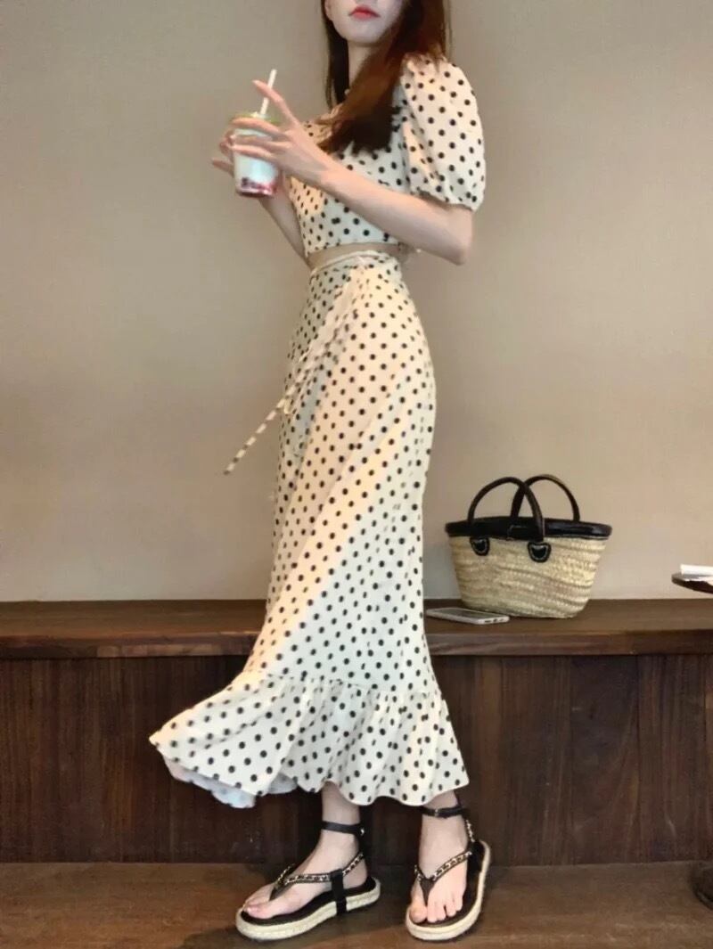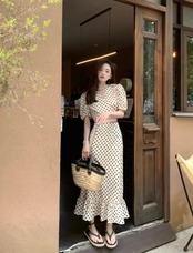 ご覧いただき、ありがとうございます。今季注目のドット柄と、女性らしいパフスリーブが魅力的なチラ見せドットパフスリーブセットアップをご紹介いたします。 セットアップなので、着るだけでおしゃれ度がアップするのはもちろん、セットアップであることから着回し力もバツグンです。上下別々にもお使いいただけて、いろいろなコーディネートが楽しめます。 さらに、パフスリーブが女性らしい印象を与え、柔らかなシルエットが体系をカバーしてくれます。ドット柄も控えめで大人っぽく、オン・オフ問わず様々な場所でお使いいただけます。 丁寧に作られたセットアップは、優れた肌触りの素材を使用しております。快適に過ごせる上に、長い間愛用していただけることでしょう。是非、この機会にご検討ください。