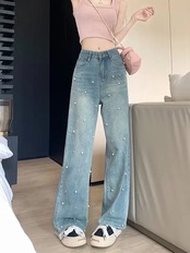 パールのデザインが施された、トレンド感あふれるワイドデニムです。ゆったりとしたシルエットで穿き心地も抜群で、スタイリングの幅が広がります。フロント部分には細かなパールが施され、デニムスカートやワンピース、トップスなどとの相性も抜群。パールの輝きが上品な印象を与え、コーディネートをグッと引き上げます。 生産・販売に至るストーリーは、女性らしさや可愛らしさを表現した商品を展開するスタイリストらが業界の発展とともに、自らのアイデアを形にするために立ち上げたブランドから誕生した商品です。品質の高さやオリジナルなデザインが話題となり、多くの女性たちから支持されています。 是非、存在感あるパールワイドデニムでおしゃれなコーディネートを楽しんでみてください。  ※デニム素材のため、洗濯による色落ちやムラができる場合があります。洗濯の際は裏返してネットに入れて、単品で手洗いでお洗濯ください。
