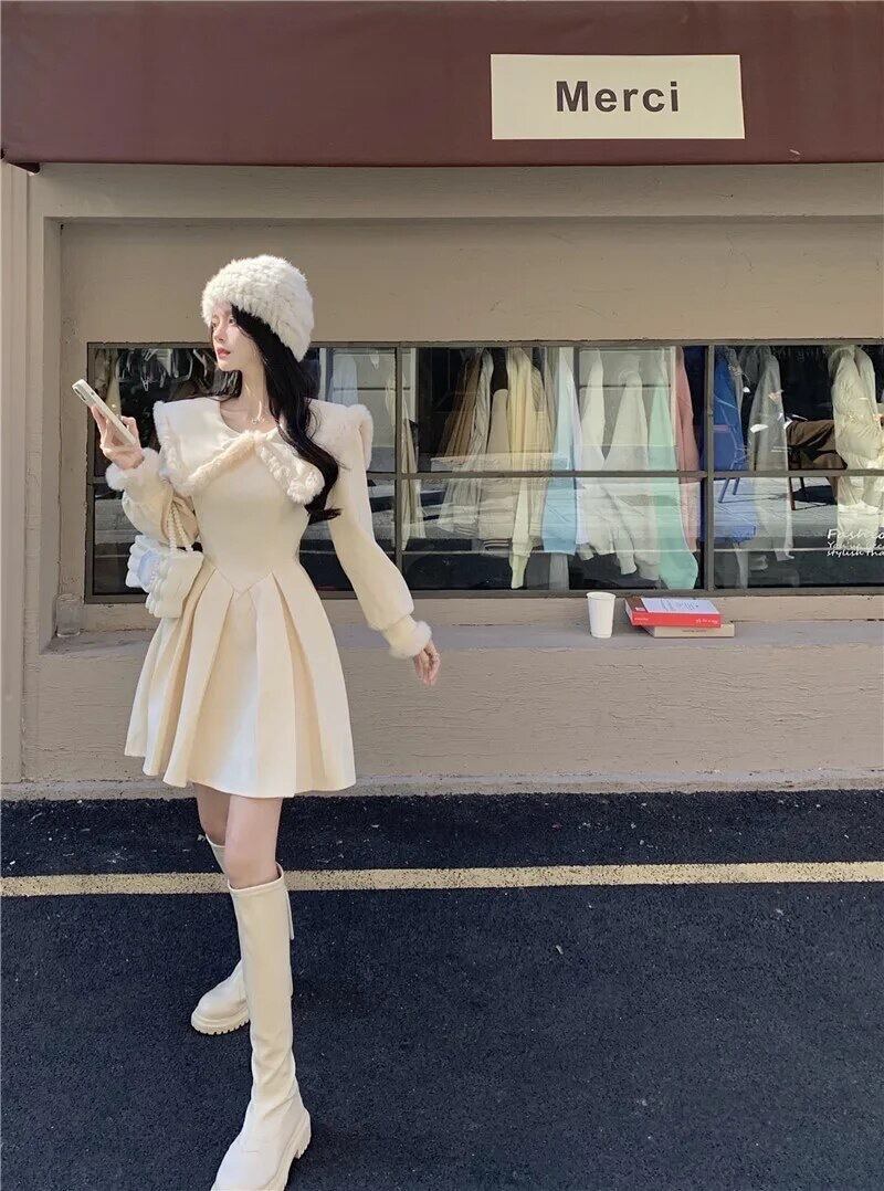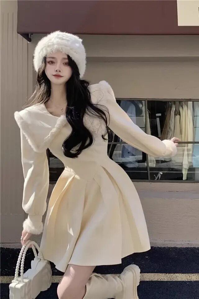 大人可愛いファーカラーワンピースが登場しました♡モフモフのファーカラーが特徴で、肩や背中もふわふわのファーがあしらわれています。寒い季節にはあたたかさをプラスしてくれる一枚です。シンプルなデザインなので、ほかのアイテムとの相性も抜群!カジュアルな日常コーデにも、ちょっとしたパーティーコーデにも、きれいめなオフィスコーデにもぴったりです。ぜひこの冬、おしゃれなファーカラーワンピースで周りからも注目を浴びてください♪