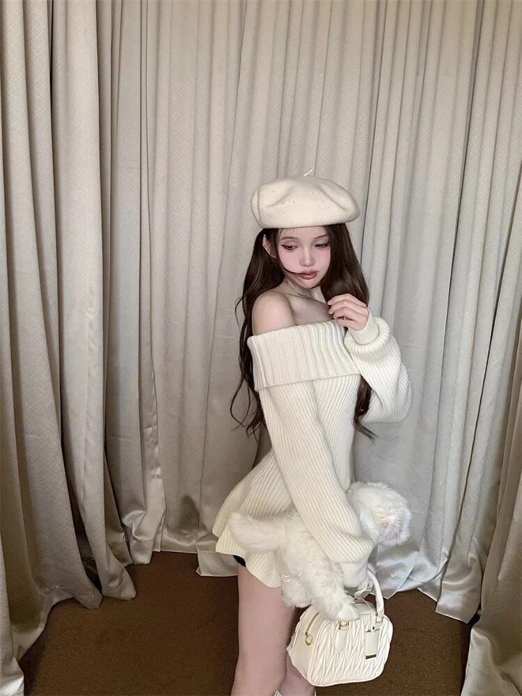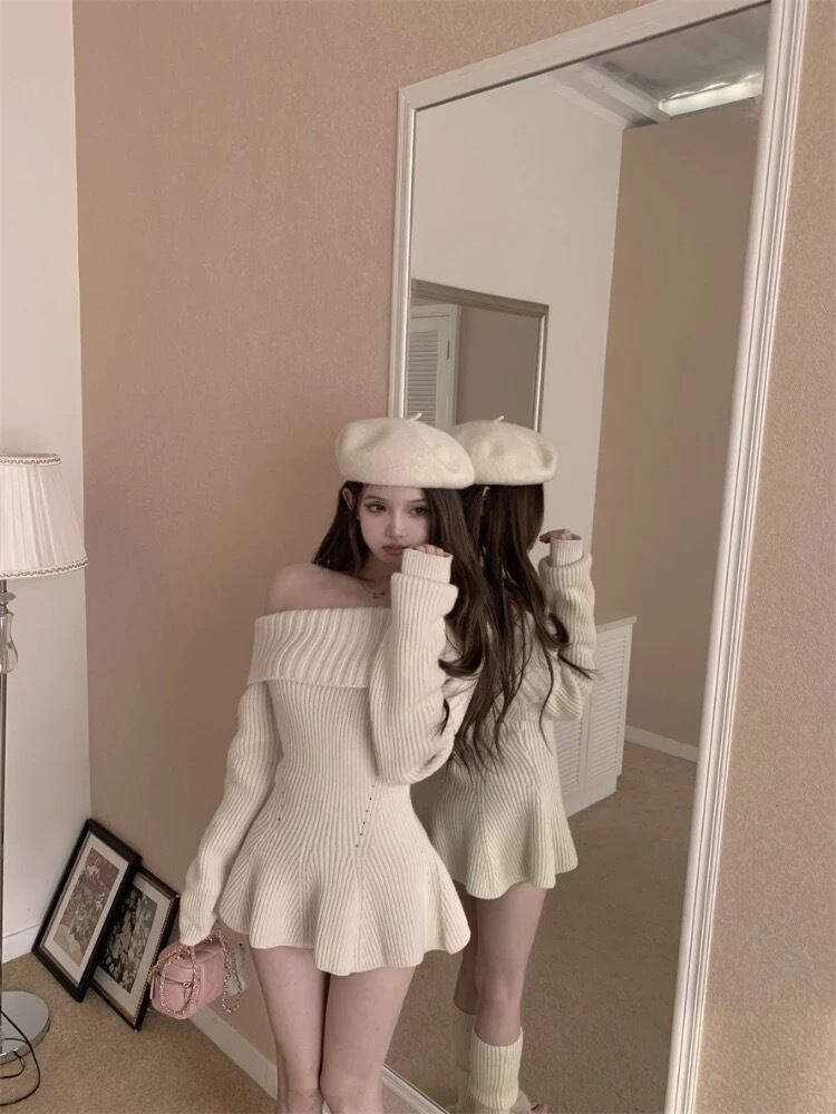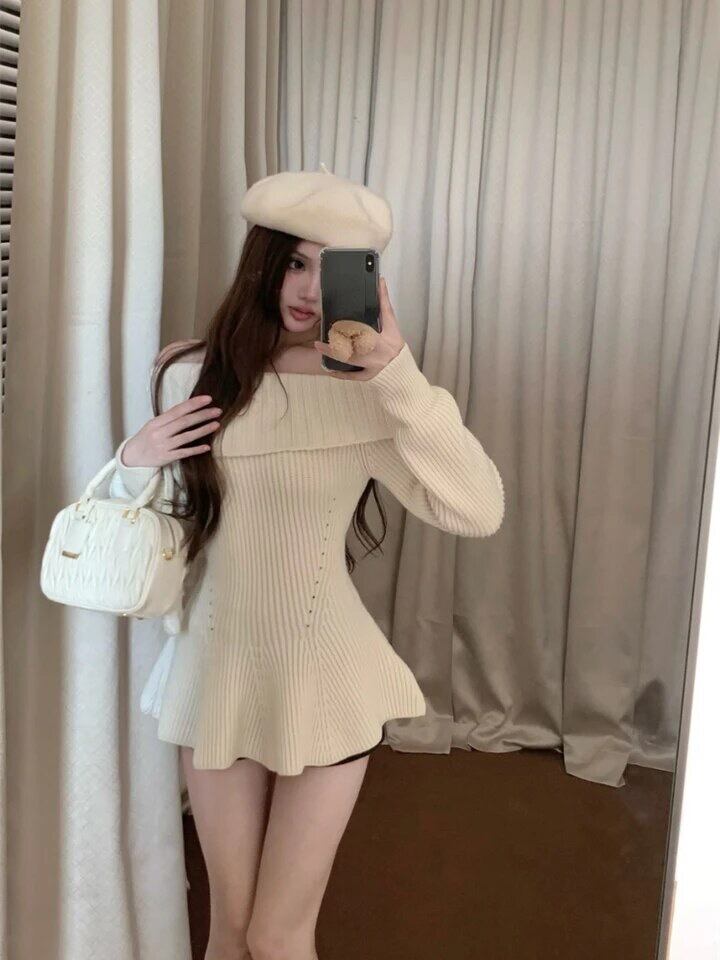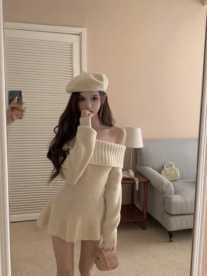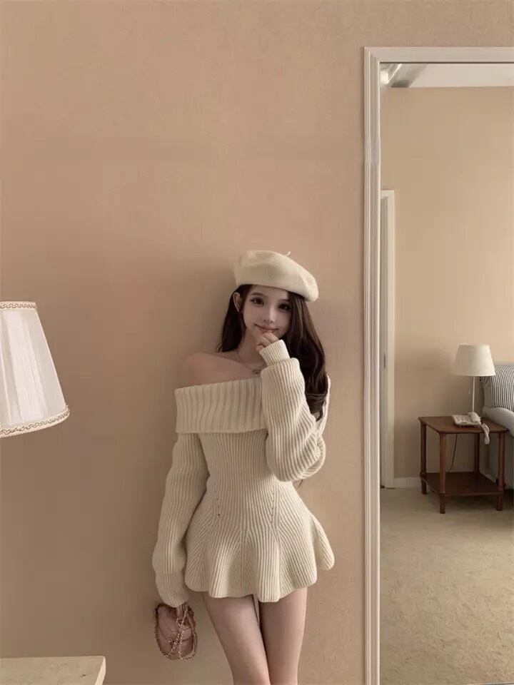 柔らかいニット素材のオフショルダーチュニックミニワンピースは、華やかな女性らしさを演出します。セクシーな肩見せデザインが、上品なエレガンスと遊び心を兼ね備えています。さらに、短めの丈とスリット入りのデザインが、美脚効果を演出し、トレンド感も抜群です。