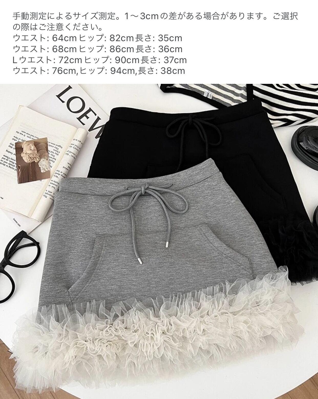 このスカートは、パーティーやデートなど特別な場にぴったりです。フェミニンなスタイルを演出しながら、動きやすさも考慮してデザインされています。ウエストはゴム仕様で、履き心地も抜群です。