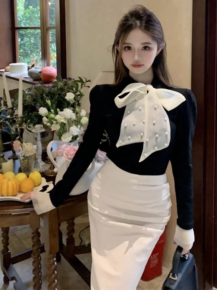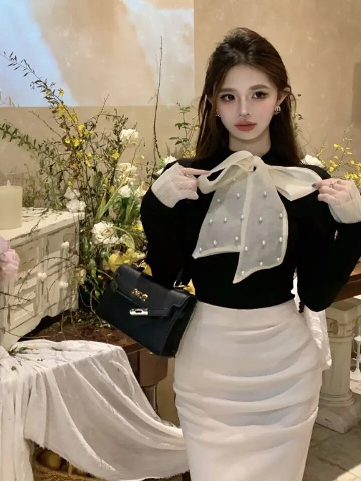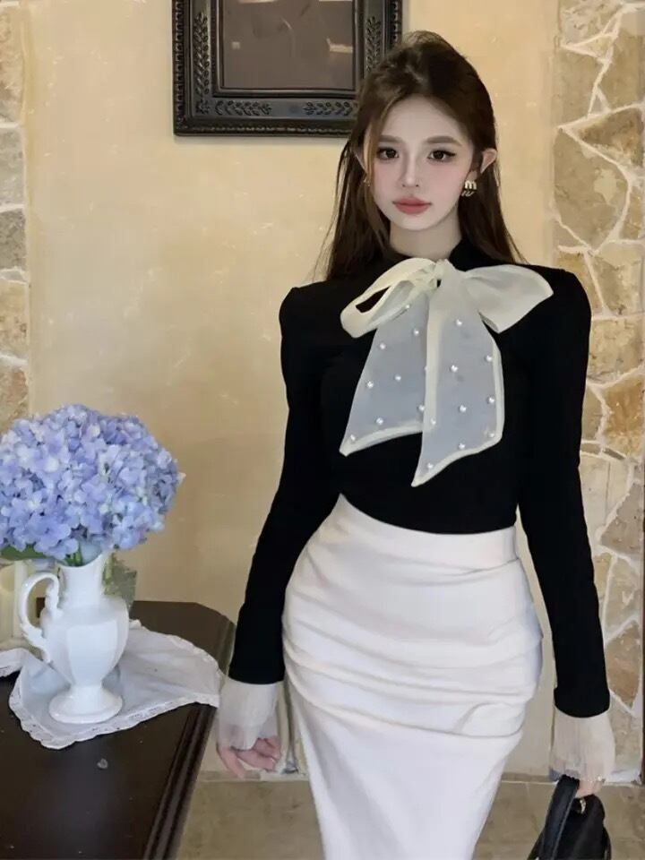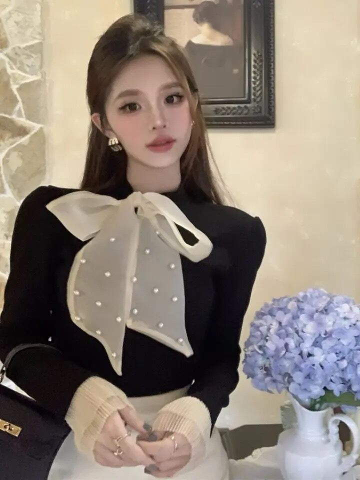 華やかなアクセントが女性らしさを引き立てるパールリボントップス♡ 繊細なパールが散りばめられたリボンデザインが、上品で可憐な印象を与えます。シンプルながらも存在感のあるデザインなので、一枚でコーディネートが完成します。
