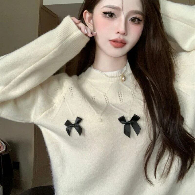 リボンが可愛らしいニットです。柔らかな素材で肌触りも良く、ふんわりとしたシルエットが女性らしい印象を演出します。リボンを結んでアクセントにするのもおすすめです。さまざまなコーディネートに合わせやすく、オフィスやカジュアルな場面で活躍すること間違いなし!寒い季節にぴったりの温かさを提供します。上質な素材を使用しており、長くご愛用いただけますよ!大切な人へのプレゼントにもおすすめです。ぜひ、この冬のおしゃれの一部に取り入れてみてください。