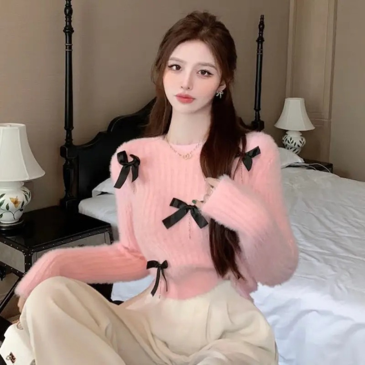 リボンジュエルニット♡は、可愛らしいリボンとビジューがあしらわれた、女性らしいニットです。柔らかな素材と程よいフィット感で、着心地も快適です。華やかなデザインなので、パーティーやデートなどの特別な日にぴったりです。シンプルなボトムスと合わせるだけで、一気におしゃれ度がアップします。リボンジュエルニット♡は、お洒落を楽しみたい女性におすすめの一枚です。