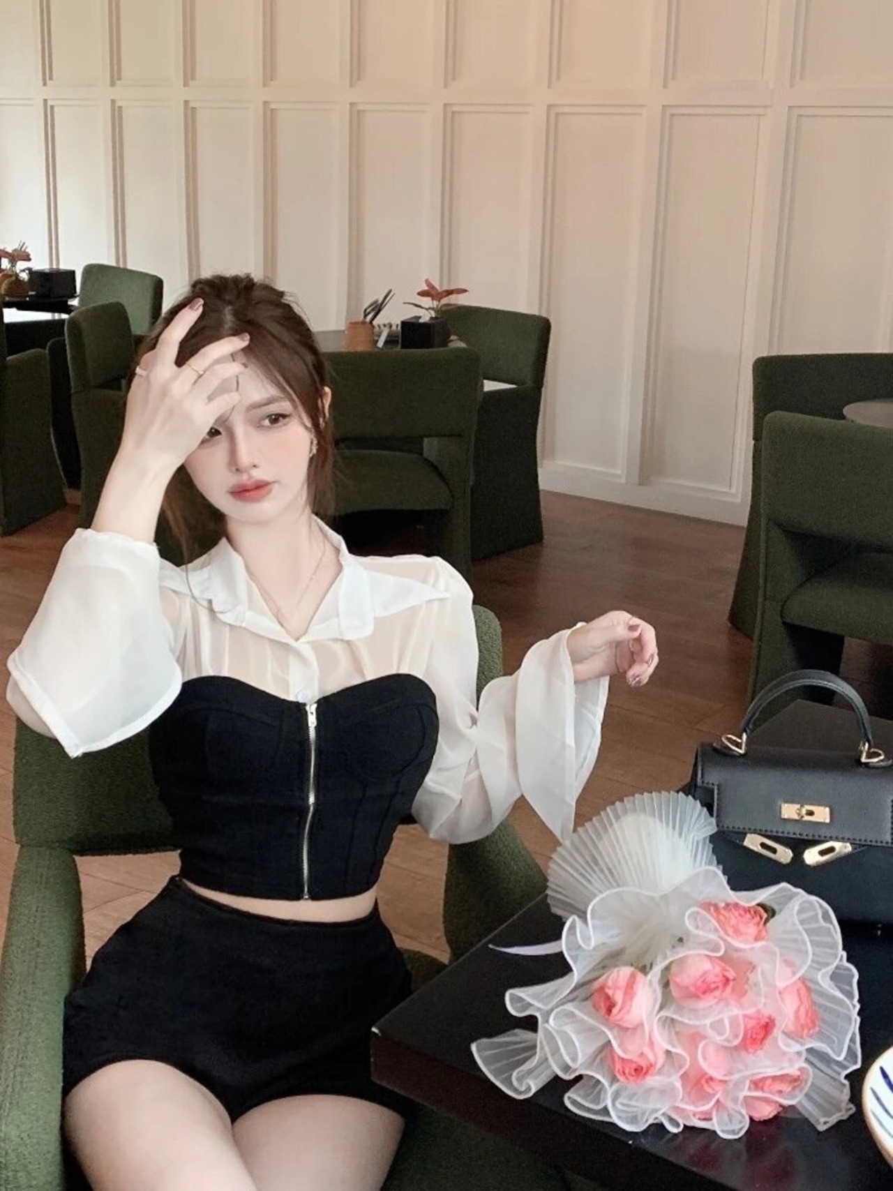 ビスチェとブラウスが一体化した、スタイリッシュで可愛らしいビスチェドッキングブラウス♡。トレンドのビスチェデザインが、一枚でおしゃれ感を演出してくれます。シャツ部分は、程よいゆとりがあるのでストレスなく着用でき、ビスチェ部分は程よいフィット感で華やかさをプラスします。インナーやアウターとして幅広く活躍するアイテムです。子供っぽくなりすぎず大人っぽいコーディネートを楽しむことができます。