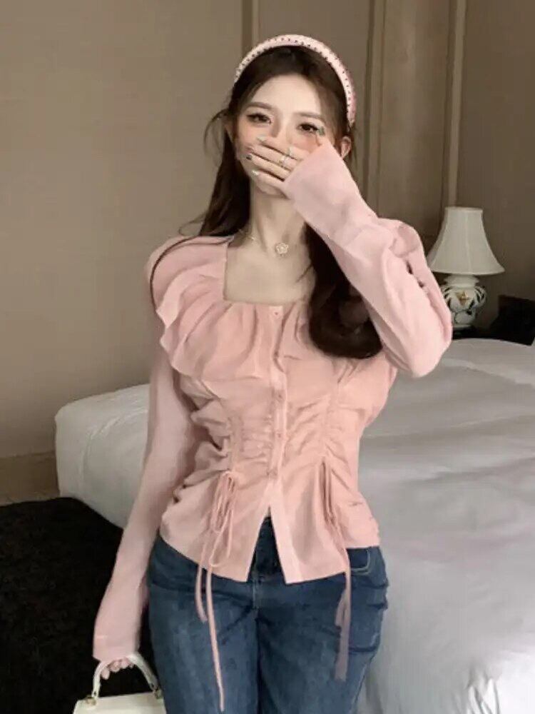 この一枚を身に着ければ、あなたの日常に輝きと幸せが溢れること間違いなし!ぜひ、ピンクフリルブラウス♡で新しい自分を発見してみてください。