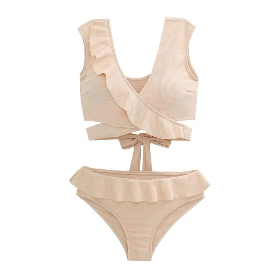 華やかなビキニスタイルを楽しめるフリルビキニ♡。繊細なフリルデザインが女性らしさを引き立て、ビーチやプールサイドで目を引くこと間違いなし!水着が苦手な方でも安心して着用できる、しっかりとサポートするブラトップ付きです。 -||- 海やプールで遊ぶのが好きな私たちスタッフが、研究と試行錯誤の末に誕生したのがこのフリルビキニ♡。自信を持っておすすめできる逸品です。水着を着ることで気分も華やかになれるように、是非このビキニで特別な時間をお過ごしください。おしゃれも楽しさも倍増すること間違いなし! -||- 今年の夏は、自分へのご褒美として、また特別な誰かへの贈り物として、フリルビキニ♡をお届けします。夏の思い出作りに、ぜひお役立てください。あなたの夏が輝き溢れるものとなるよう、お手伝いさせていただきます。 -||- ※水に濡れたまま放置しないでください。UVケアを忘れずに行い、長期間の保管や直射日光を避けてください。