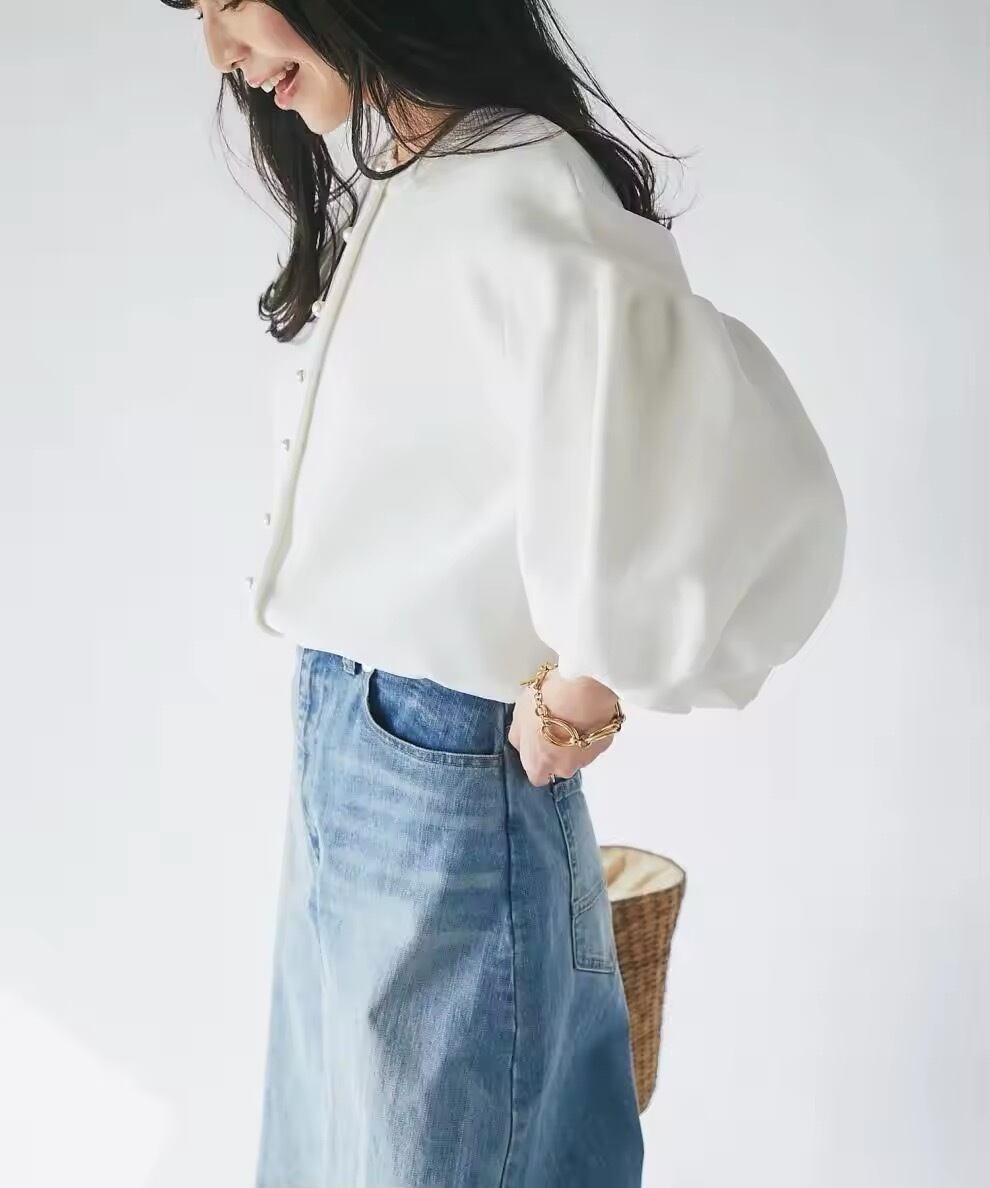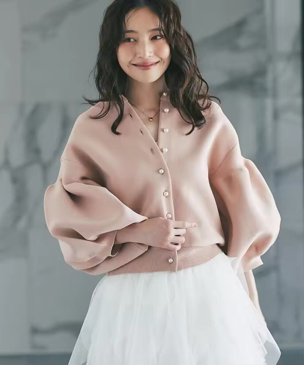 パールボタンパフスリーブカーディガンは、女性らしさを引き立てるおしゃれなアイテムです。上品なパールボタンが施されたパフスリーブデザインは、特別なシーンだけではなく、カジュアルな日常使いにもぴったりです。やわらかい素材は肌触りが良く、快適さとともに洗練された印象を与えます。