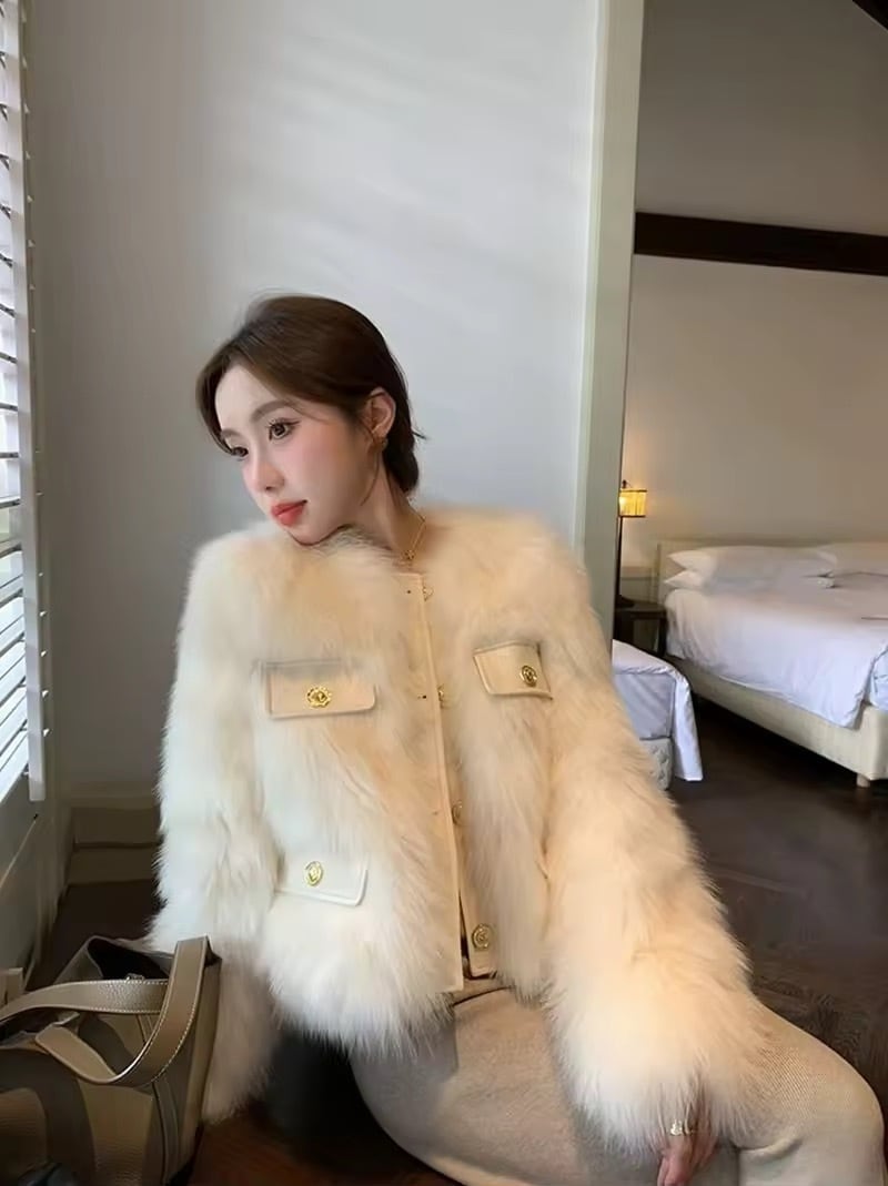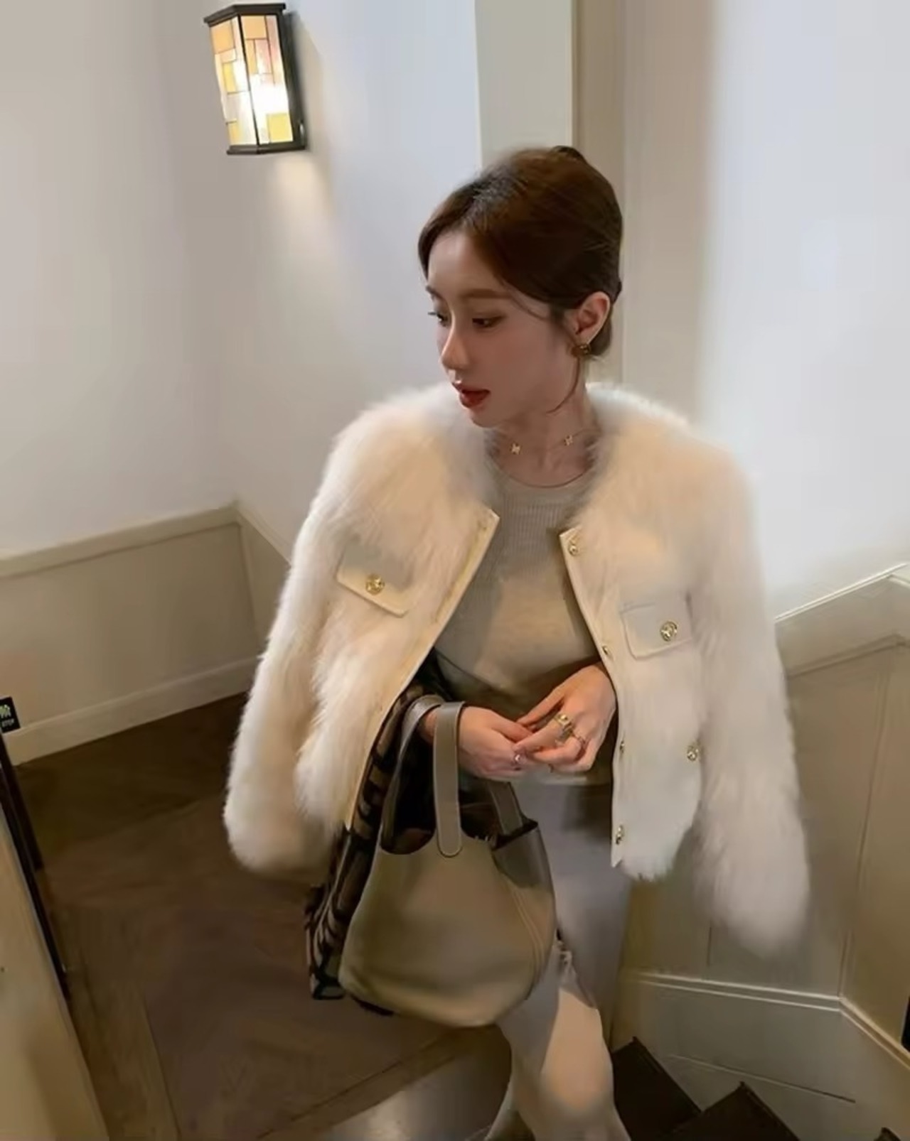 ゴールドボタンフェイクファーコートは、寒い季節にぴったりなあたたかくてスタイリッシュなアイテムです。柔らかなフェイクファー素材を使用しており、しっかりとした保温性を保持しながらも、軽やかな着心地が魅力です。華やかなゴールドボタンがアクセントとなり、シンプルでありながらおしゃれな印象を与えます。
